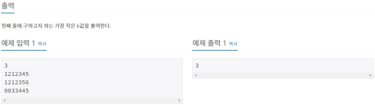 번호를 뒤에서 k자리만 남겨놓았을 때, 모든 번호를 다르게 만들 수 있는 k의 최솟값을 구하는 것이 목표이다.