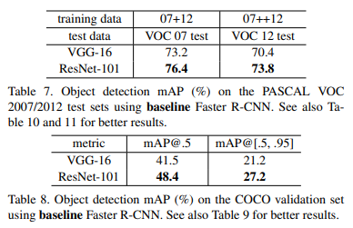 검출 method로는 Faster R-CNN 모델을 사용했으며, VGG-16을 ResNet-101로 교체했다.