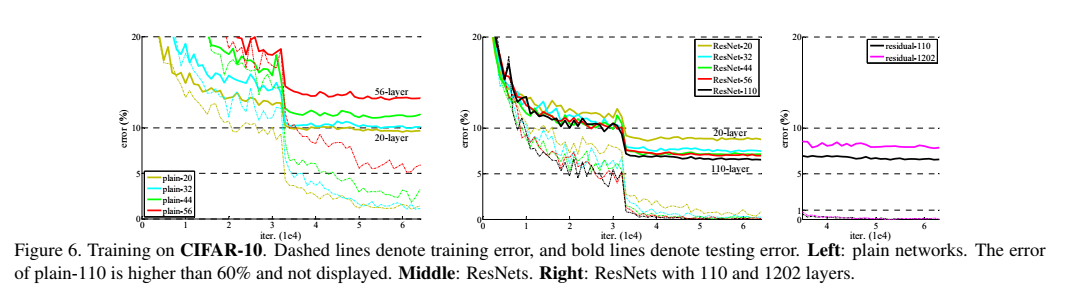마지막 그림은 ResNet 110, 1202 Layers의 양상을 보여주는 그림이다.