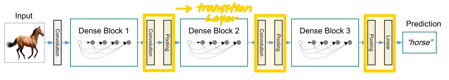 모든 DenseNet 모델들은 위와 같은 구조를 갖는다.
