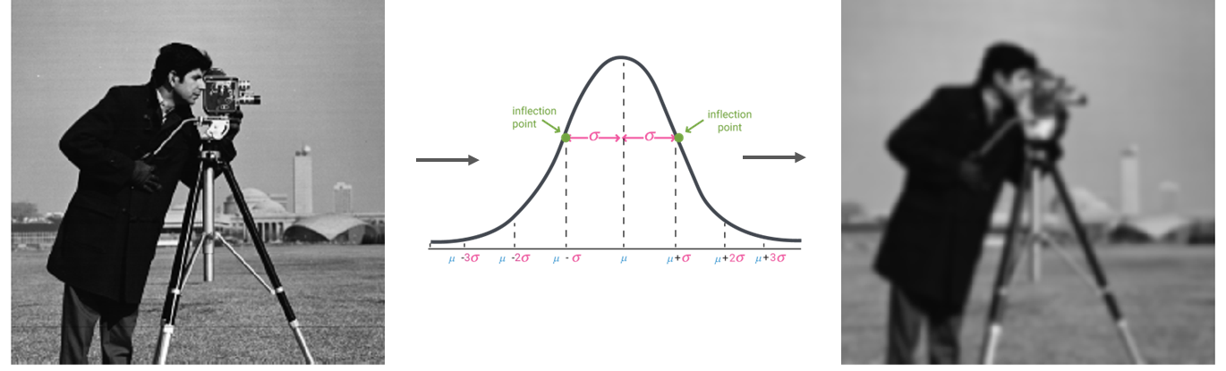가운데 Gaussian filter를 사용하여 맨 왼쪽 형태와 같은 결과가 도출됩니다.