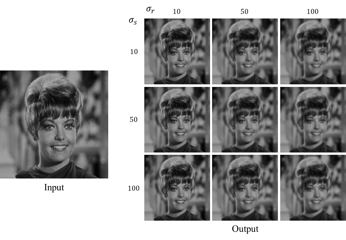 Bilateral filter는 두 개의 매개변수 σs 및 σr를 갖습니다.