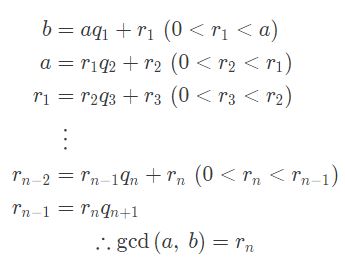 위와 같은 과정을 n번 반복했을때, 나머지가 0이 나온다면, 두 수 a,b의 최대공약수가 rn이 나오게 된다.
