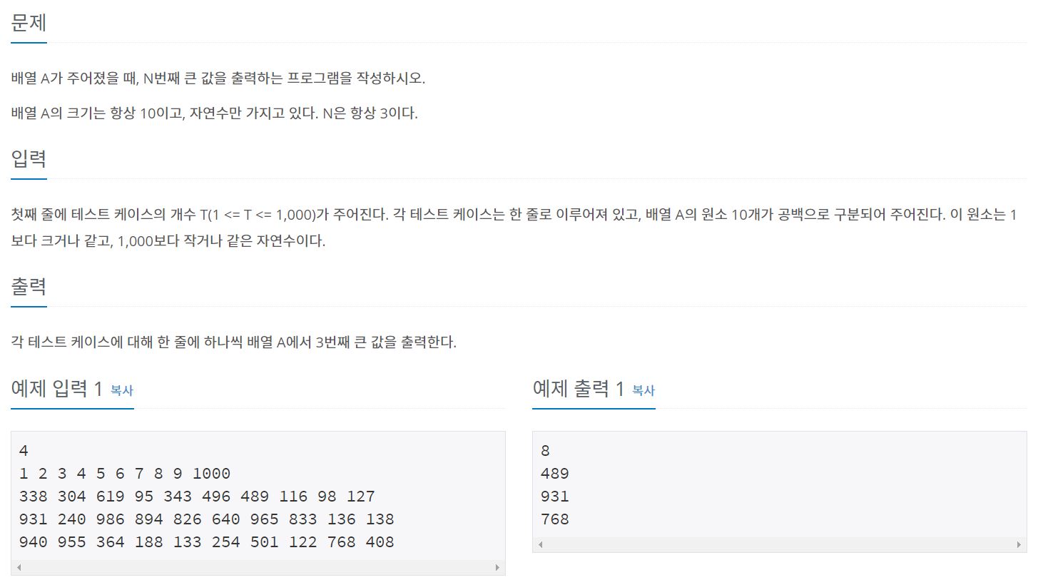 3번째로 큰 수를 출력하는 알고리즘을 구현하는 것이 목표이다.