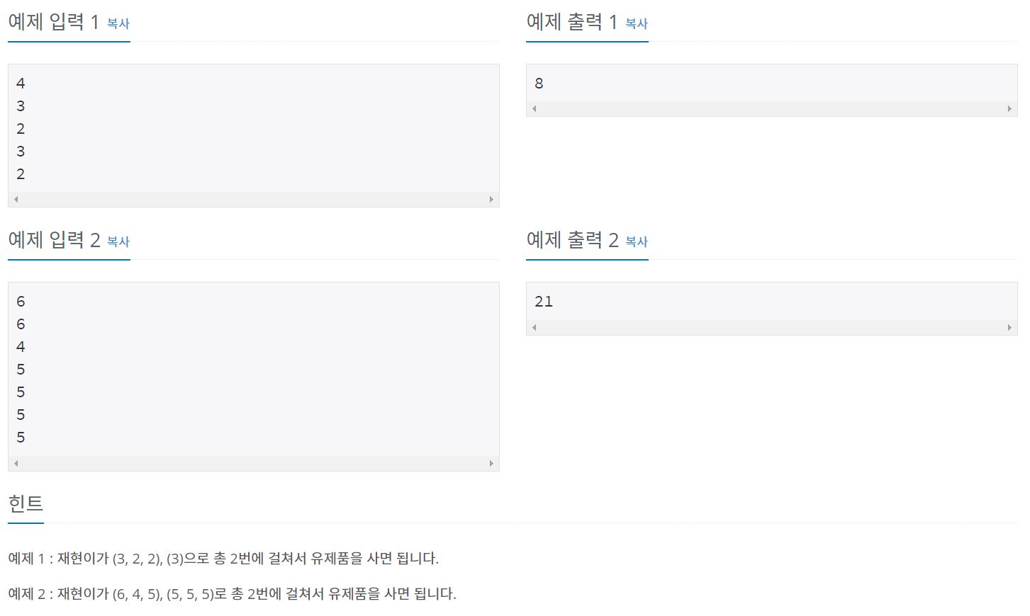 반면, (3, 7, 5) (9) 로 사면, 3원인 제품을 할인받아, 총 12 + 9 = 21원이 든다.