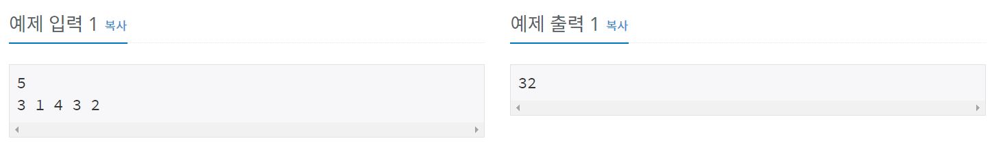 첫째 줄에 사람의 수 N(1 ≤ N ≤ 1,000)이 주어진다. 둘째 줄에는 각 사람이 돈을 인출하는데 걸리는 시간 Pi가 주어진다. (1 ≤ Pi ≤ 1,000)