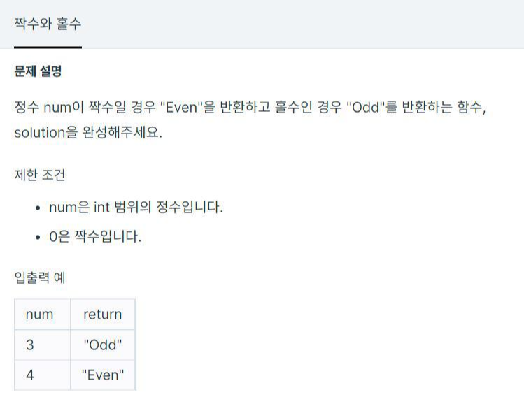 정수 num이 짝수인 경우 Even, 홀수인 경우 Odd를 반환하도록 하는 것이 목표이다.