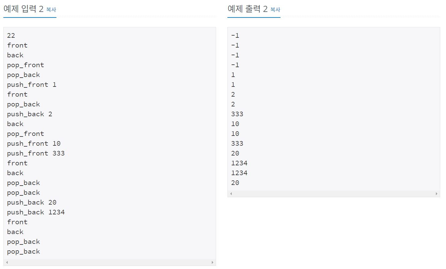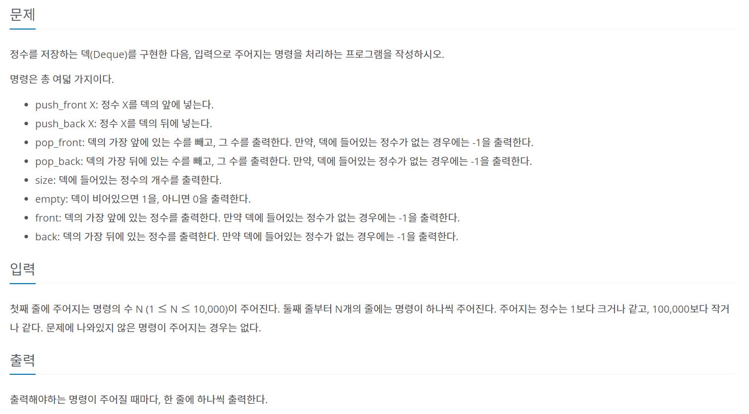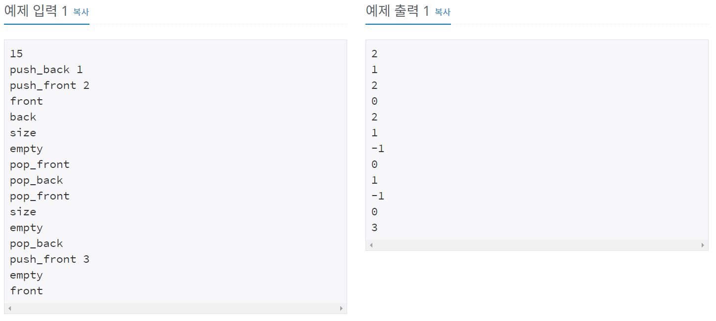 3. pop_front, 4. pop_back의 경우, 덱이 비어있으면 -1을 반환,