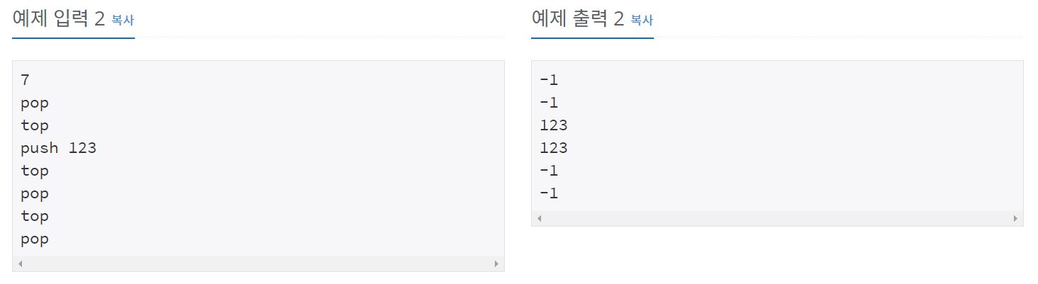 // 스택이 비어있으면 -1을 출력, 그 외에는 top 값을 출력 후 pop