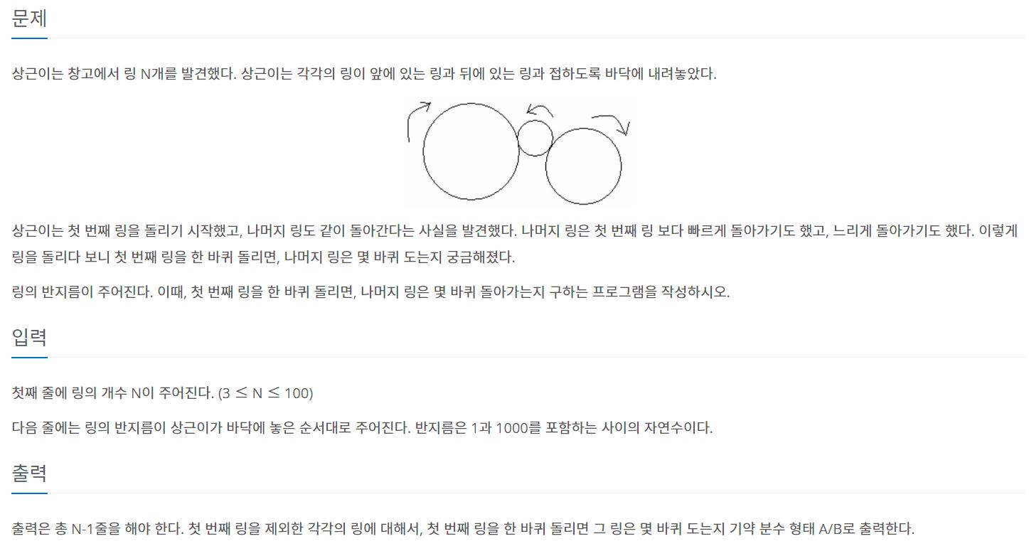 나머지 링들이 몇바퀴를 도는지를 기약분수 형태로 나타내야 한다.