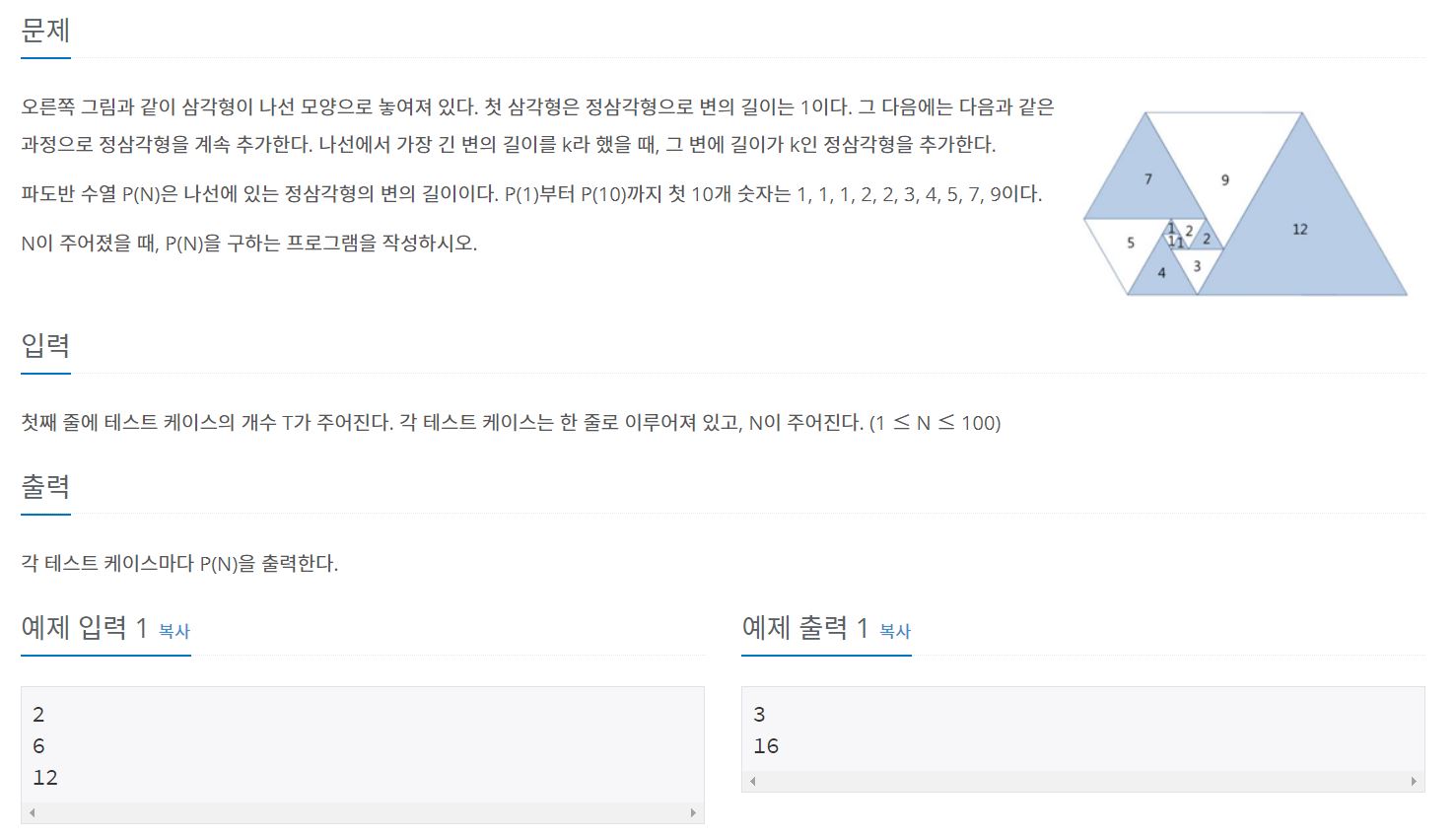 각 테스트 케이스의 P[n] 값을 출력하는 것이 목표이다.
