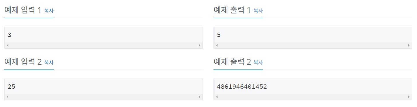 예제 입력 2의 경우인 25를 보면, 출력이 4861946401452로,