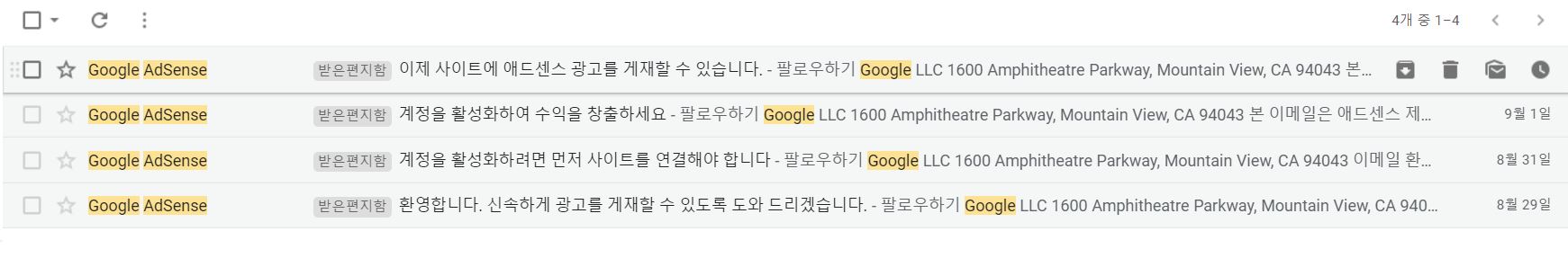 3통의 이메일 중에는 다른 애드센스를 신청한 분들도 받았겠지만,