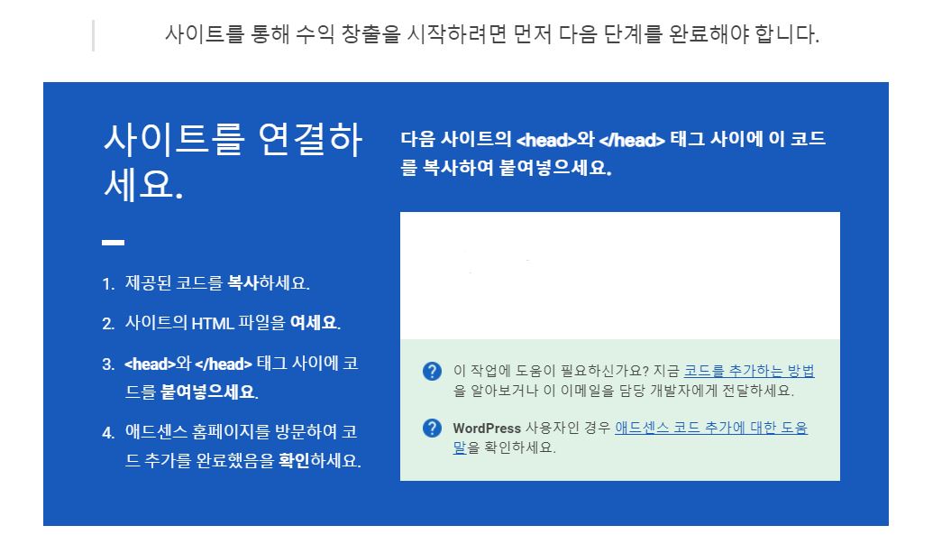애드센스에서 제공되는 코드, 원활한 광고개제를 위한 동영상 등이 첨부되어있었다.
